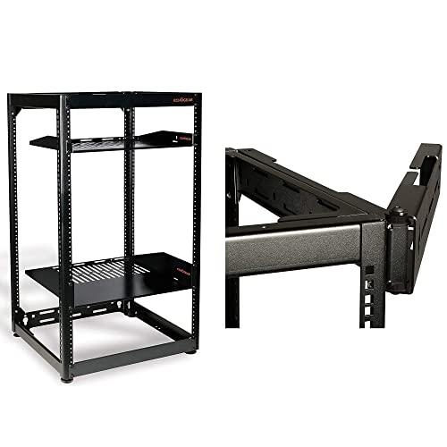 Rack up all your networking gear safely and securely on the wall with this 20U open-framed rack and swing-out arm. This bundle includes everything you need to rack 'em up: entire 20U open frame rack structure, 4x leveling feet, 1x 1U vented shelf (15.12" deep), 1x 2U vented shelf (18" deep), and 25x rack mounting screws, all hardware to install arm on wall.