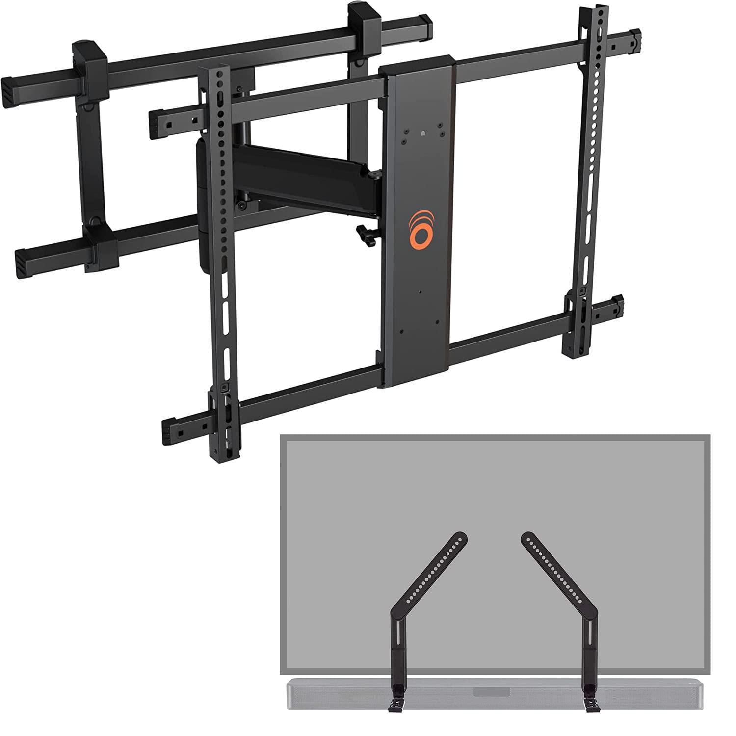 ECHOGEAR XL Large Full Motion TV Mount tilts, swivels and extends to give you the best viewing angle of your screen. Pair with this on-wall soundbar mount to enhance your setup, allowing the sound to move with your screen as you adjust the TV.