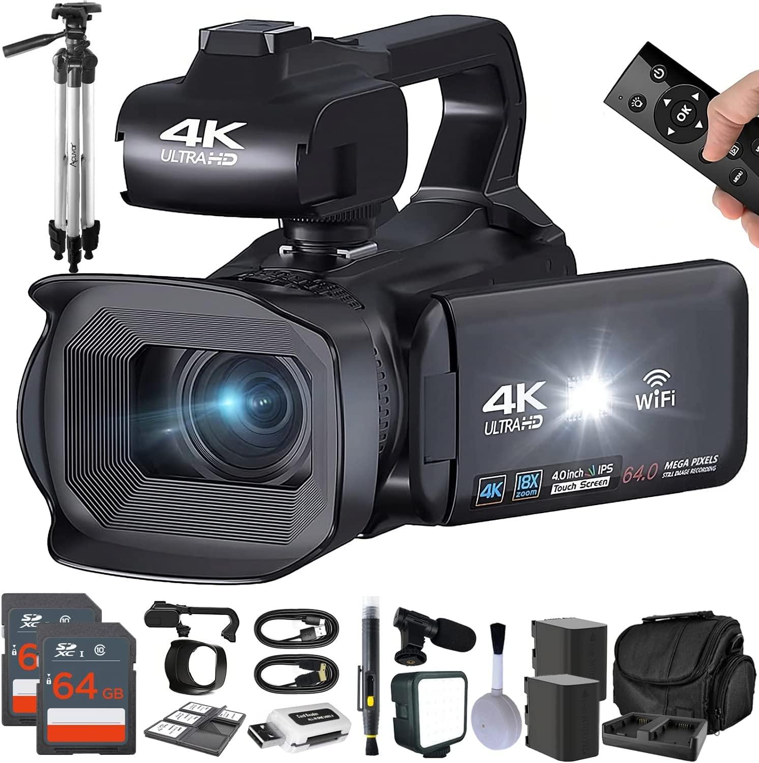 - THE PERFECT GIFT: This video camera 4k provide auto focus, recording while charging, slow motion, time-lapse, webcam, self-timer, HD output, WIFI control, handheld stabilizer, 64GB SD card, USB Card Reader, 4500mAh battery, etc. It is an ideal gift for amateurs and beginners, suitable for various purposes such as weddings, parties, church activities, football games and activities. One purchase meets your all photograph needs.