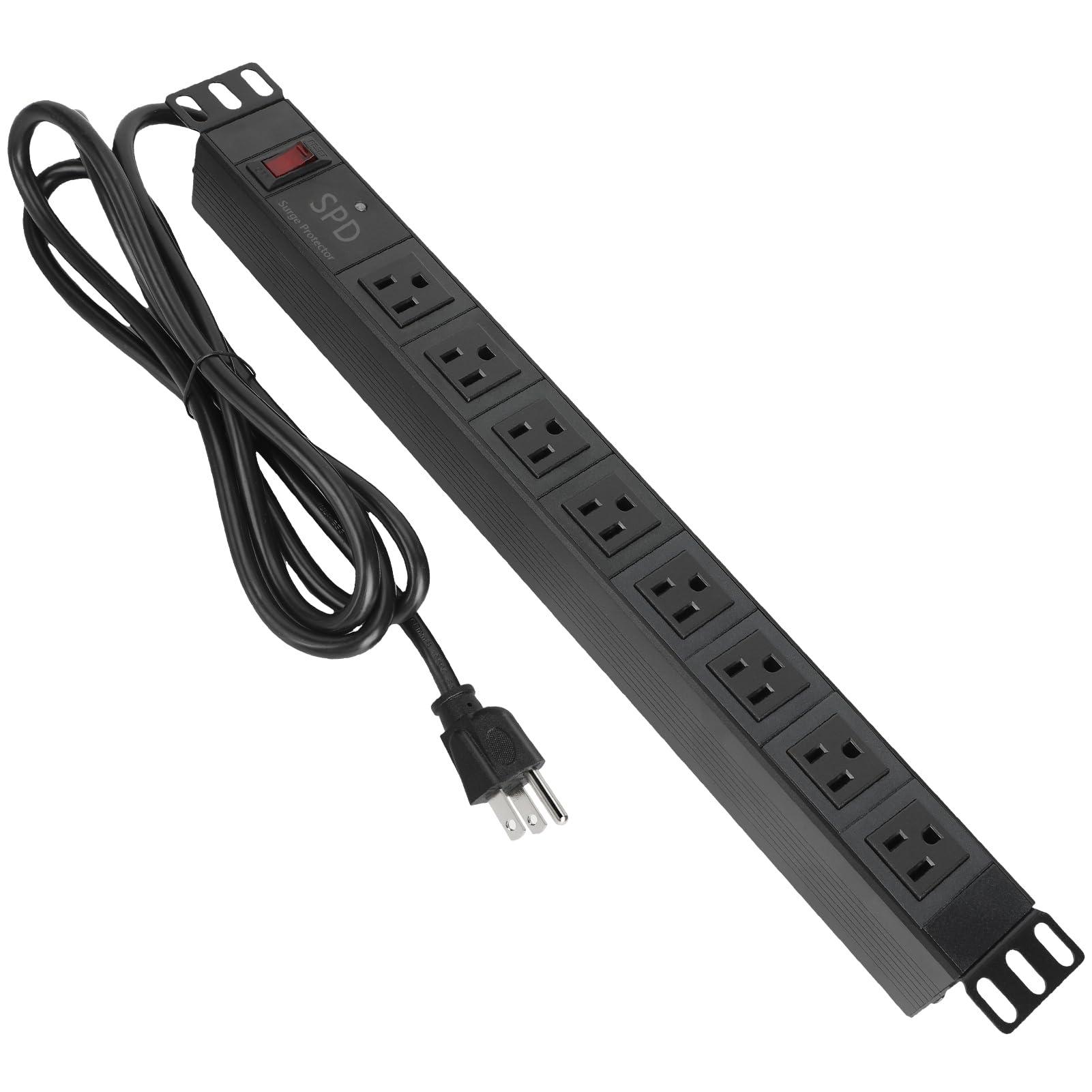 - SURGE PROTECTION: This 125V/15A Rackmount Surge Protector is an indispensable device for data centers, network closets, and VoIP Phone systems, offering crucial power protection to sensitive equipment. It is a rack mountable 8-outlet (125V) power strip equipped with both a built-in overload switch and reset switch, ensuring reliable performance for your networking equipment. Additionally, the built-in SPD surge protection feature safeguards your valuable assets against potential damage from power spikes and surges, promoting their reliability and longevity.