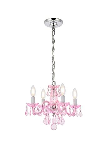 - Steel frame with pink finish is highlighted by curved glass arms, a glass vase, and glass holders for the 4 candelabra bulbs; Type Pendant; Product Warranty 1 year limited
