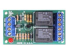 Super Low 1.2 mA Trigger Current Positive (+) Or Negative (-) Trigger Input Double Form "C" Contacts DPDT Heavy Duty Contact Rating On Board LED Status Indicator Includes Double Sided Mounting Tape Mounts in Standard 2.75" Snap Track Packaged in Reusable Poly Storage Box Current Draw: 60mA (both relays on) Relay Contacts: Form "C" , 7A @ 30VDC, 10 A @ 125VAC Trigger Voltage: 5 - 24VDC Trigger Current: 1.2mA @12 VDC