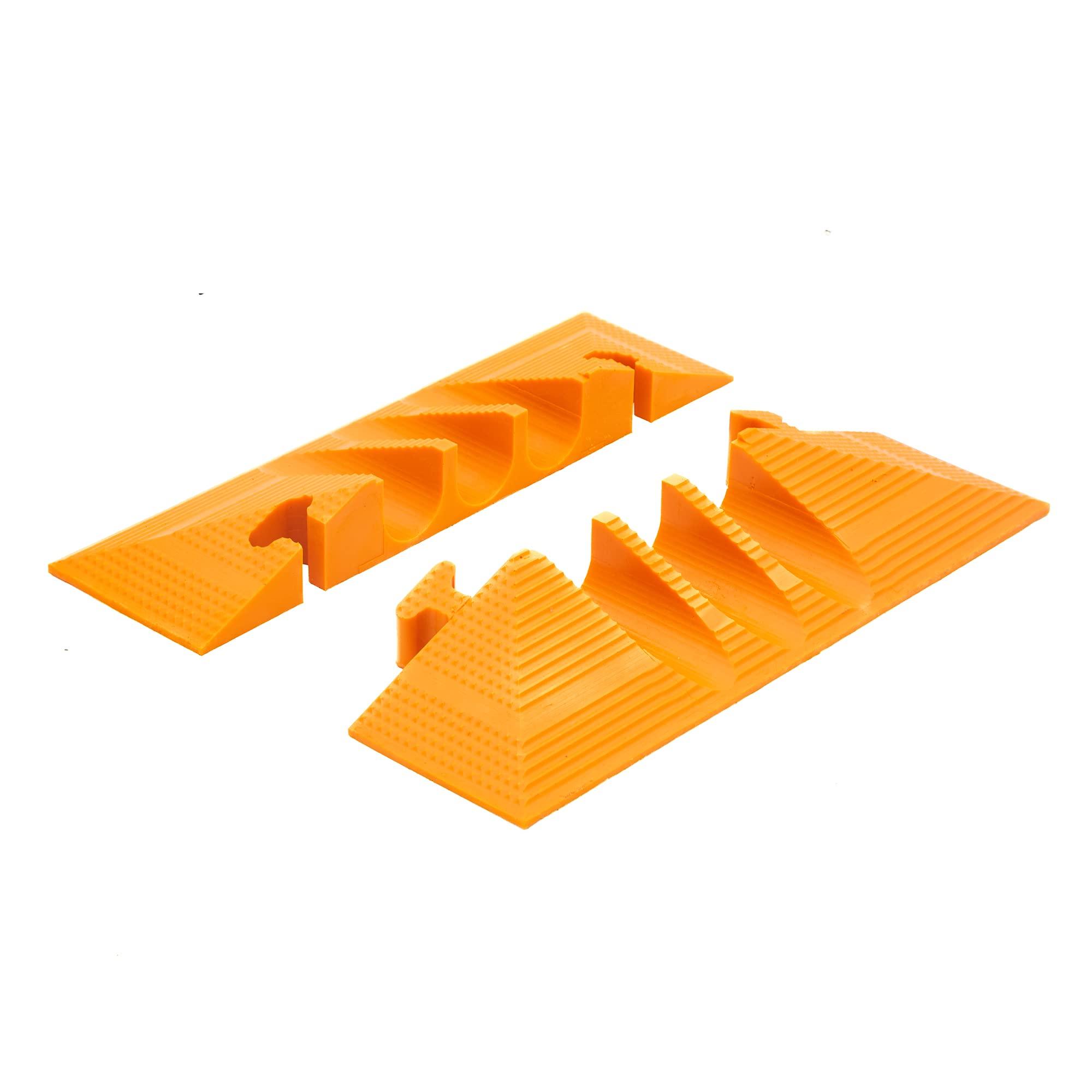 Mighty Guard Collection: Elasco Heavy Duty One Channel Cable Guard offering 2 inches in channel width. This Heavy Duty collection offers 2 & 3 size channels. Products are available in multiple channel options including turns and end caps. The MightyGuard collection focuses on protecting larger size cables & hoses from heavy duty vehicle traffic. Elasco Cable Guards are constructed with a solid cast polyurethane base and lid that are connected by a reinforced fiberglass rod that wont rust or corrode. Our products hold up against natural and man-made elements and are compliant with safety requirements. With easy transportation and simple installation, our products can be configured to meet your needs. Backed by a lifetime warranty and offering premium material characteristics, our products are all Made in USA. We provide a basic solution to a basic problem. Whether it be pedestrian or vehicle traffic we help maneuver from one side of cables to the other side while keeping your cables absolutely safe. No matter the weight of your cargo, we will help you get to your destination in a safe and efficient manner.