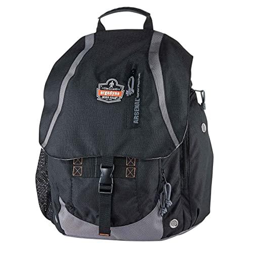 The Ergodyne Arsenal 5143 General Duty Gear Backpack to makes your life easier by keeping the gear you need clean, dry and organized. This traveling backpack features a large main compartment with plenty of room for your everyday essentials, organizational pockets to house smaller items and a laptop/tablet sleeve to protect your devices. DURABLE MATERIALS This heavy-duty backpack is super durable made with 600 denier polyester material to withstand wear and tear for long-lasting performance. The bottom is reinforced with a 1680 denier polyester. The reinforced handle and adjustable padded shoulder straps make transporting this bag around easy. ULTIMATE ORGANIZATION The rucksack backpack style has a large open main compartment to fit all your gear and stays upright for easy loading and unloading, so no gear gets left behind. Need to pack 24 cans of beer and a pack of bacon? No problem. Or if you must, load it up with your clipboard, files, iPad and pens. Three small accessory pockets can hold cell phones, headphones, pens, keys, and other small parts to keep them easily accessible. The padded laptop sleeve in the main pocket ensures your device stays protected. The interior polyester material of the Realtree Xtra option is a light tan and gray color making it easy to see your stuff in the bag, so you can grab what you need and go. FROM WORKDAY TO WEEKEND Great for your next outdoor adventure, vacation or visit to the gym. This lightweight backpack is not only great for your hauling your gear for the job but can also be used as a weekend bag as well. Its the perfect camo backpack for camping, hunting, fishing, canoeing, or any other outdoor activity keeping your gear concealed in the woods or in the duck blind.