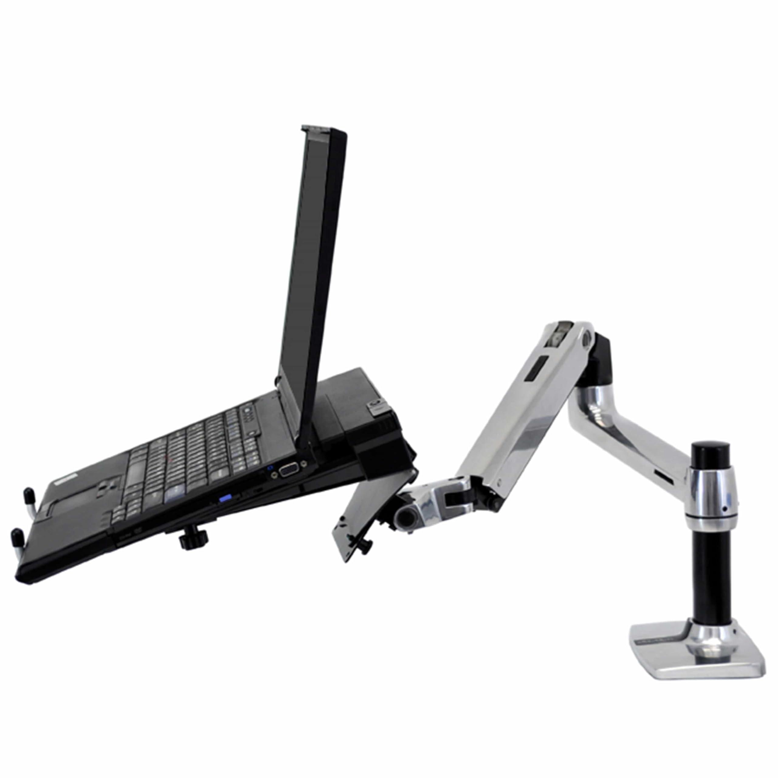 This ingenious display mount makes viewing of a laptop screen more comfortable, offering far more adjustment capability than standard laptop stand products. Match this laptop holder with an external keyboard and mouse to create a more ergonomic and productive workspace with your notebook computer.