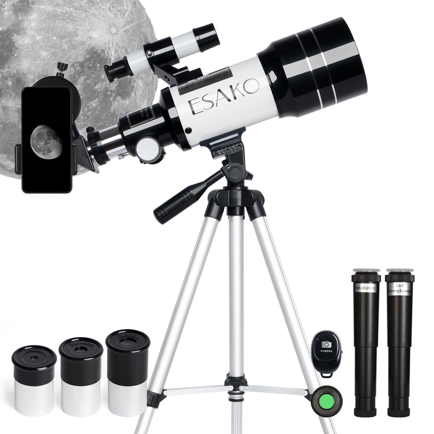 - Premium Quality OpticsFully coated lenses with low reflection loss and high light transmission creates stunning images. 70mm aperture provides excellent light gathering power and a wide field of view. Perfect telescope for kids and astronomy beginners to explore the Moon and other planets.