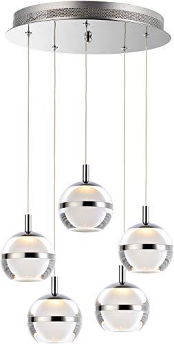 ET2 E24595-93PC Swank Metal Band with Acrylic/Frosted Orb Pendant Ceiling Lighting, 5-Light 30 Watts, 6"H x 15"W, Polished Chrome