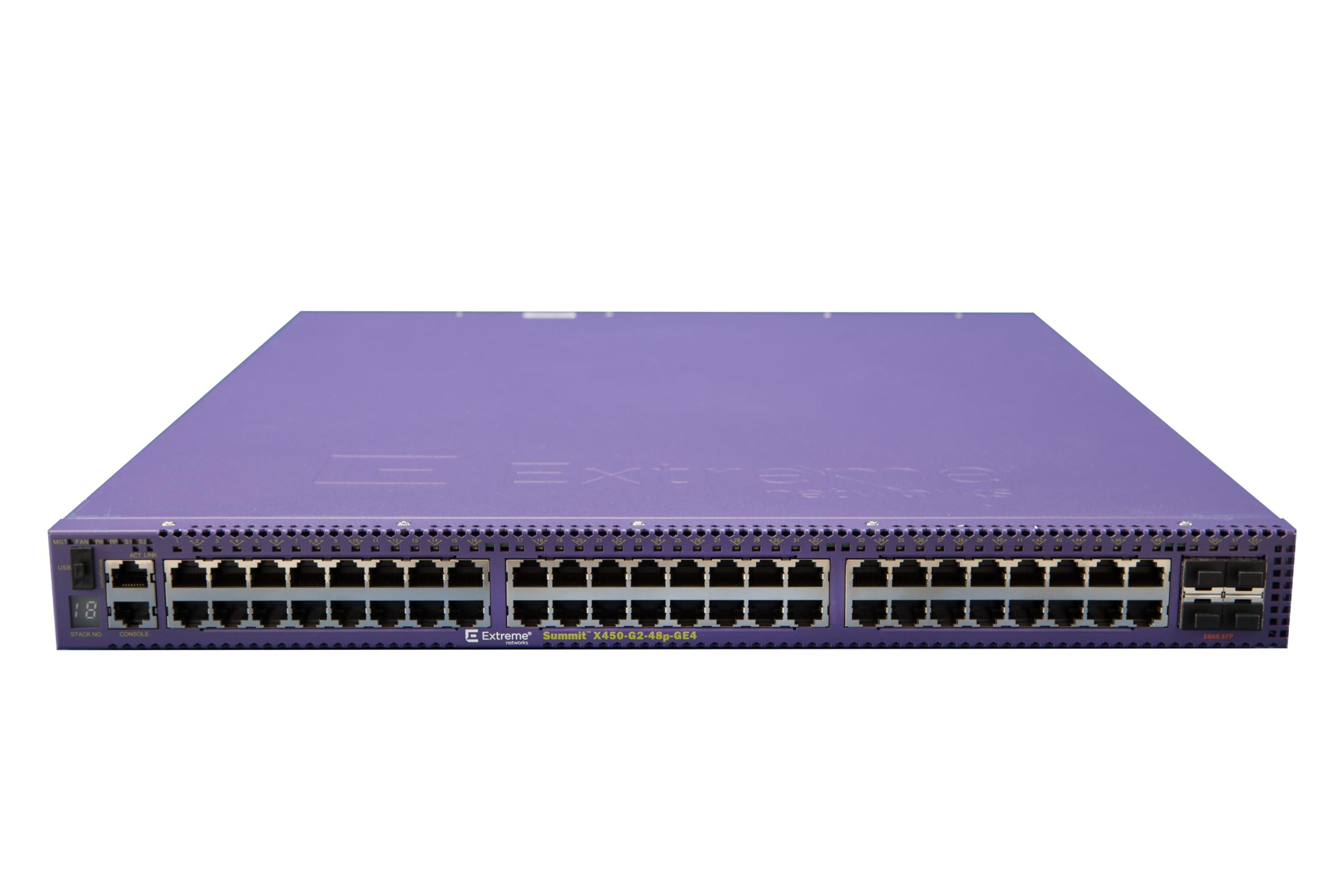 - Advanced Network Management: Powered by ExtremeXOS, the X450-G2-48p-GE4 offers a robust set of management features, including automated network provisioning, advanced security protocols, and comprehensive monitoring tools, simplifying network administration and enhancing security.