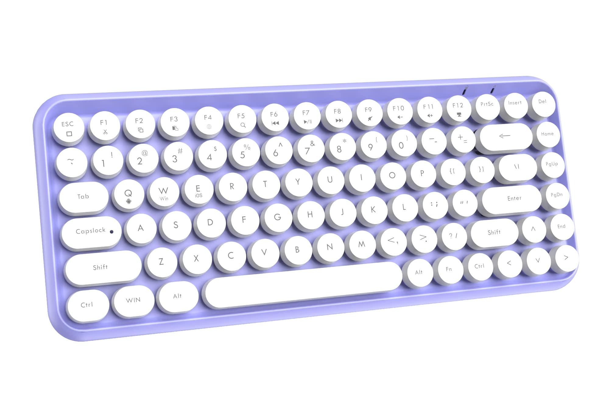 - Compact & Fashion Bluetooth Keyboard: This Bluetooth keyboard has 84 round keys. It is compact and easy to carry. The fashion shape is inspired by the retro elegant typewriter shape, the unique round keycap. Just press FN + C keys to enter Bluetooth mode.
