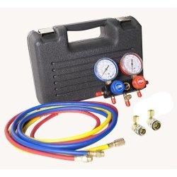 Features and Benefits: Aluminum block design with sight glass. Anti flutter design. 72" hoses. Quick couplers. Convenient carrying case.
