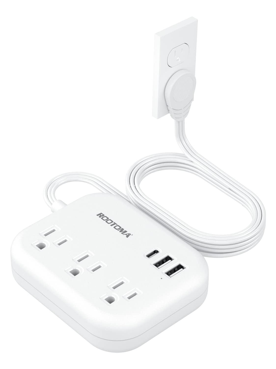- 6 in 1 Power StripThe flat extension cord 5ft could turn 1 america socket into 3 AC outlets and 3 USB ports ( 1 USB-C ), charges 6 devices simultaneously without blocking, keeping your desktop organized;