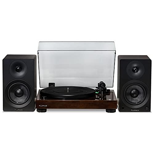 Fluance RT81 Elite High Fidelity Vinyl Turntable with Ai41 Powered 5" Stereo Bookshelf Speakers, Diamond Stylus, Belt Drive, Built-in Preamp, 90W Class D Amplifier, Bluetooth (Natural Walnut)