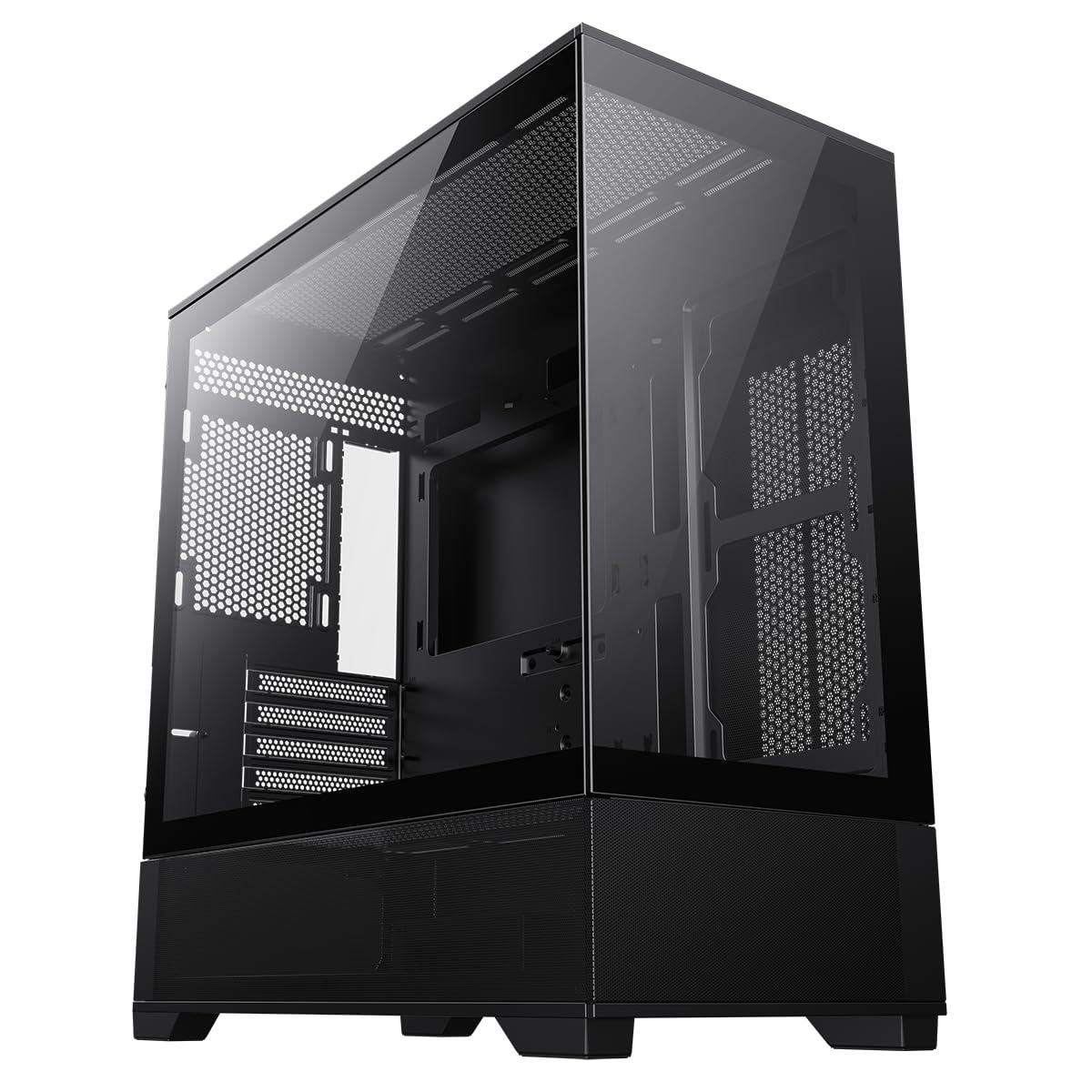- Ultra Fine Mesh - This ultra-modern Micro-ATX chassis finished in all black not only has a panoramic design but is smart with amazing cooling and ventilation. The mesh panelling at the bottom allows air to flow into the case easily without obstruction combining a super airflow performance with dust filtration. This case has the perfect design from the outside to inside keeps the internal hardware at low temperatures.