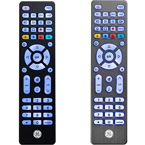 GE Backlit Universal Remote Control for Samsung, Vizio, LG, Sony, Sharp, Roku, Apple TV, RCA, Panasonic, Smart TV, Streaming Players, Blu-Ray, DVD, Simple Setup, 4-Device, Black, 48843 Brushed Black