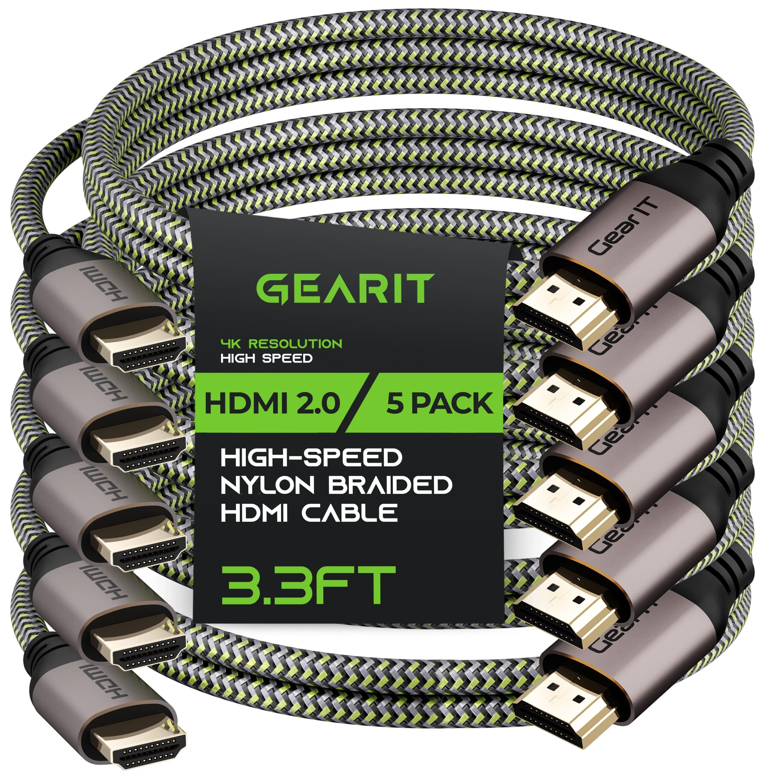 GEARit GEARit 4K HDMI Cable, (5-Pack / 3.3ft / 1m) High-Speed HDMI 2.0b, 4K 60hz, 3D, ARC, HDCP 2.2, HDR, 18Gbps - Nylon Braided Cord