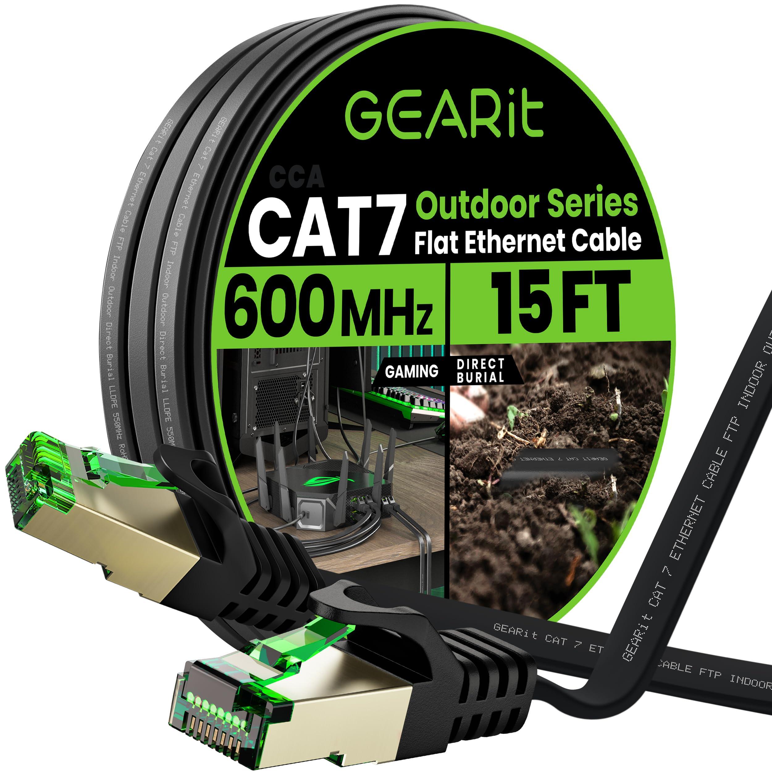 GEARit GEARit Cat 7 Outdoor Flat Ethernet Cable (15ft, Black) Direct Burial Rated LLDPE Jacket - Indoor Cat7 Shielded FTP 600MHz 10Gbps High Speed Gaming Computer Network RJ45 Snagless Patch Cord Internet