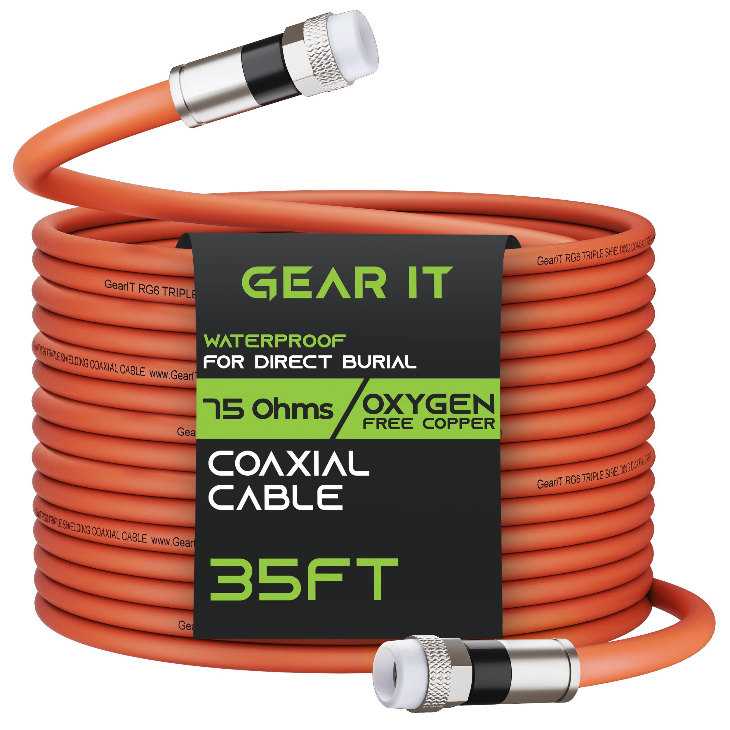 GEARit Coaxial Cable for Direct Burial (35ft) RG6 70 Ohm RF Rubber Boot Waterproof Underground in-Wall with Rubber Boot, High-Speed Internet, Broadband, Digital TV Aerial, Satellite Cable 35 Feet