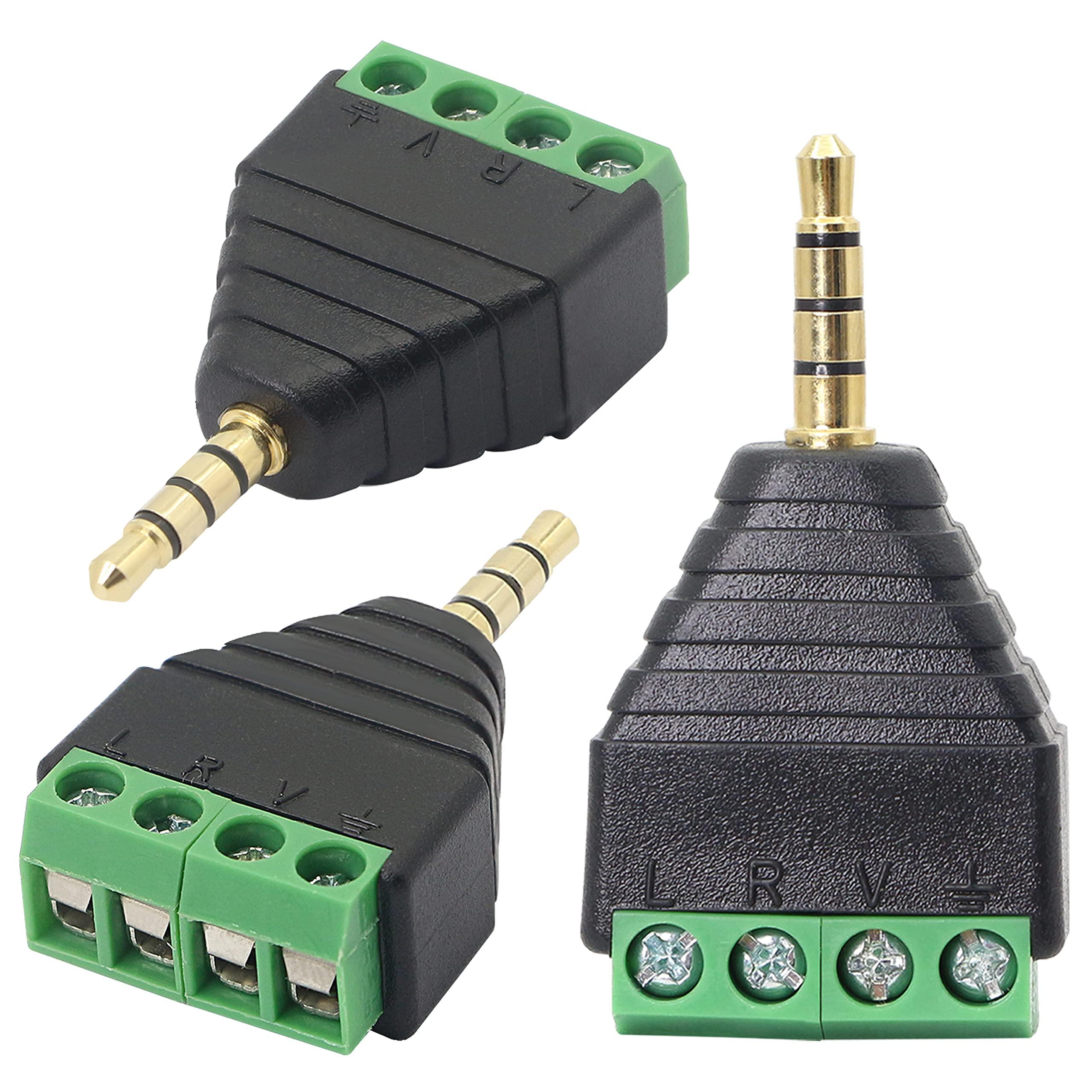 - Wire range max: AWG2616, Pin: 4way/pin, Compact design and reliable connection for the female 3.5mm audio to secrew terminal adapter cable.Connectors 1: 3.5mm TRRS (4-Pole) Male jack, Connectors 2: AV 4-Pin Screw Terminal Block jack.