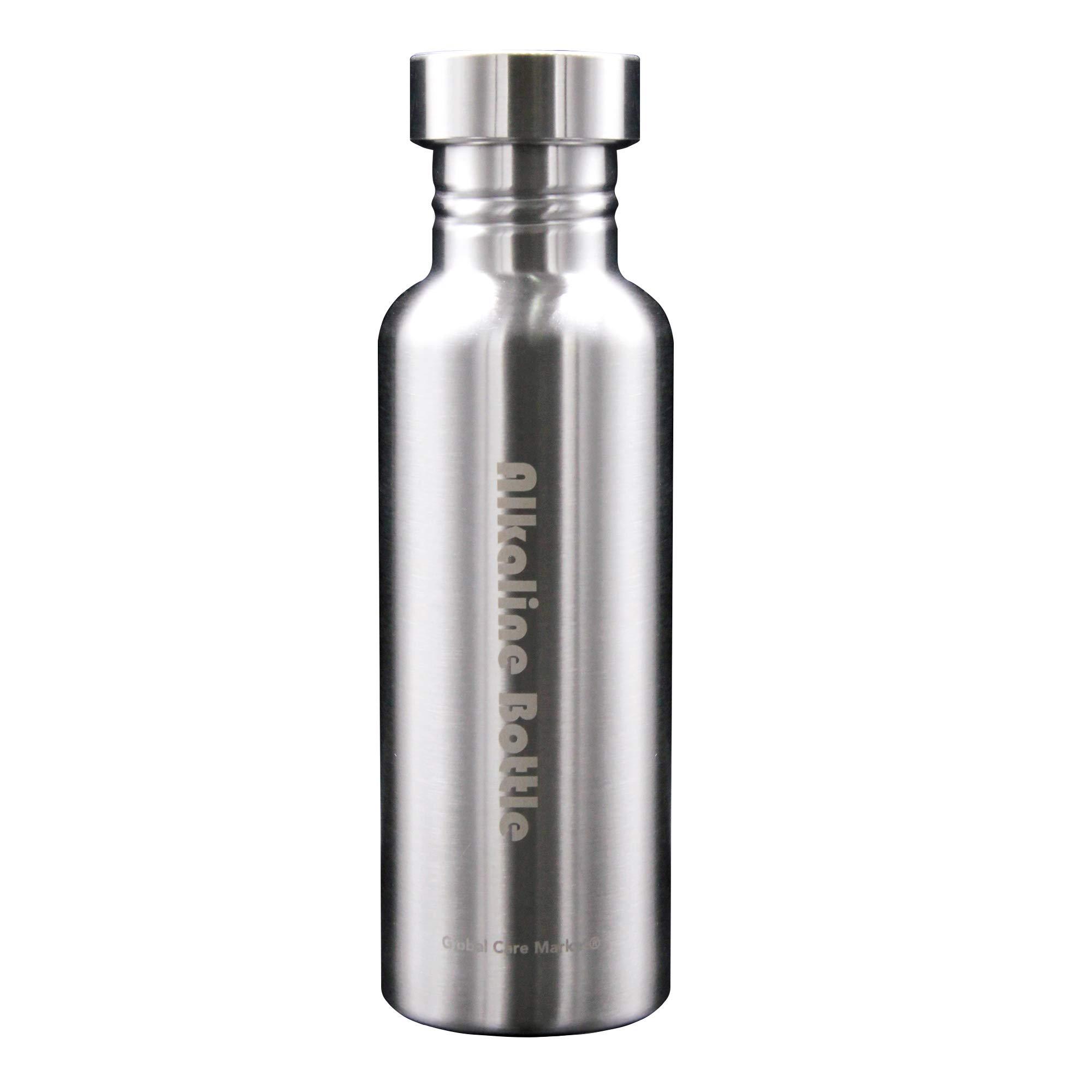 - The alkaline water bottle is made of stainless steel and contains a filter that uses all-natural stones and mineral elements to alkalize, purify and energize the water in the bottle.