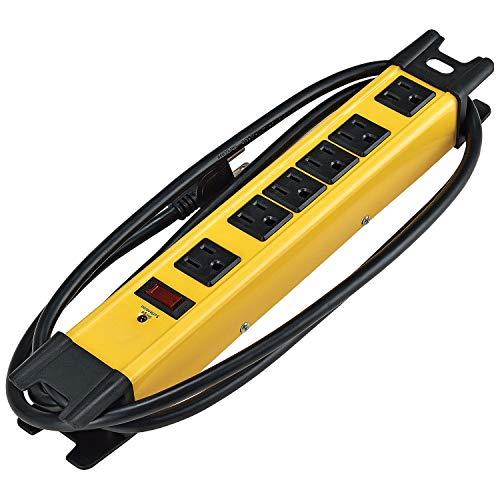 This surge protector comes with a 6ft heavy duty cord and plug. 6-outlet metal industrial grade surge protector provides 6 additional electrical outlets for accomodating the operation of multiple electrical devices in the same room and offers 1200 joules of protection. Unit also contains lighted rocker switch, surge indicator light and 2 outlets for large adapters. Item is ETL approved., Lot of 1