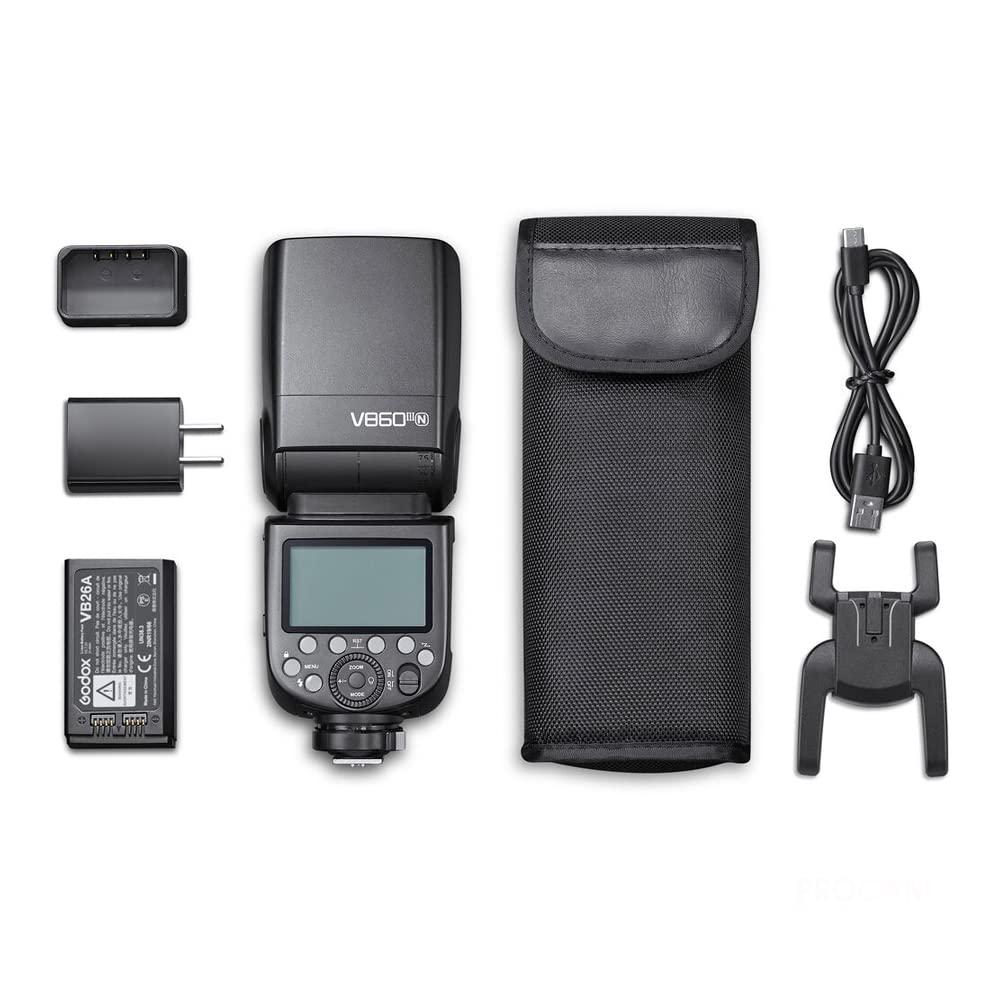 Power, speed, and integrated radio transmission make the Ving V860III TTL Li-Ion Flash Kit from Godox a hard-to-beat option for your Nikon cameras. Fully compatible with TTL systems, the Ving V860III supports many advanced functions and features. Also, it features the Godox X wireless radio system, which provides both master and slave TTL functionality at a distance. On top of this, the flash is powerful and versatile, featuring a guide number of 197' at ISO 100 and 200mm along with a zoom range of 20-200mm. And this flash runs off a rechargeable lithium-ion battery pack that ensures fast recharge with a capacity of up to 480 full-power flashes. For general operation, the Ving V860III features full bounce flash capabilities, including tilting and rotation left and right. As a TTL-compatible unit, this flash offers support for high-speed sync, flash exposure compensation, 1st and 2nd curtain sync, and much more. Additionally, it can function as an optical master or slave unit if needed.