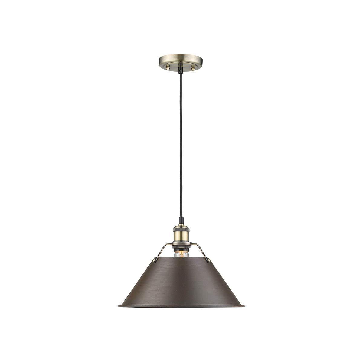 Golden Lighting 3306-L AB-RBZ Orwell Pendant, Aged Brass with Rubbed Bronze Shade- Pendant Lighting, Pendant Lights, Pendant Lights Kitchen Island, Pendant Light,