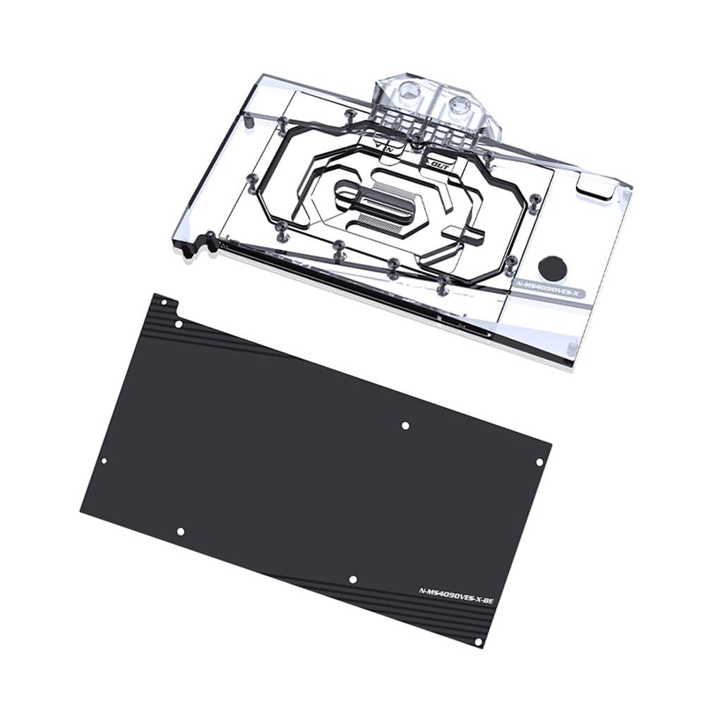 - Copper plate is integrated with high-precison CNC processing,with high-precision CNC processing,with large water flow coverage area,and the cavity is scientifically rigorous fluid analysis,without dead angle of water flow,thus providing effective heat dissipation for GPU/MOS/VRAM.