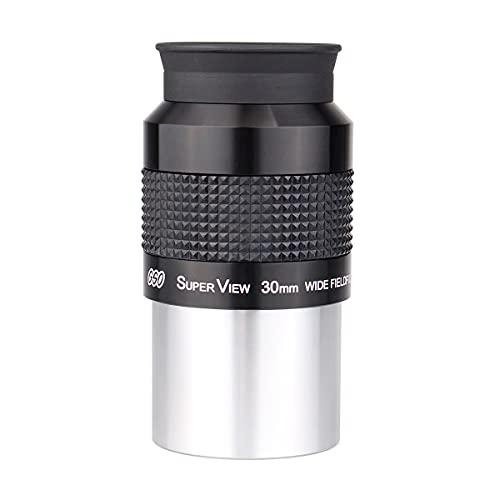 2 inch 30mm SuperView eyepiece, 68 degree apparent field of view Fully multi-coated lenses, 5 lens elements, Blackened lens edges 22mm eye relief, fold-down rubber eyeguard Threaded for standard 2" astronomy filters Weight 12.9oz., Made in Taiwan