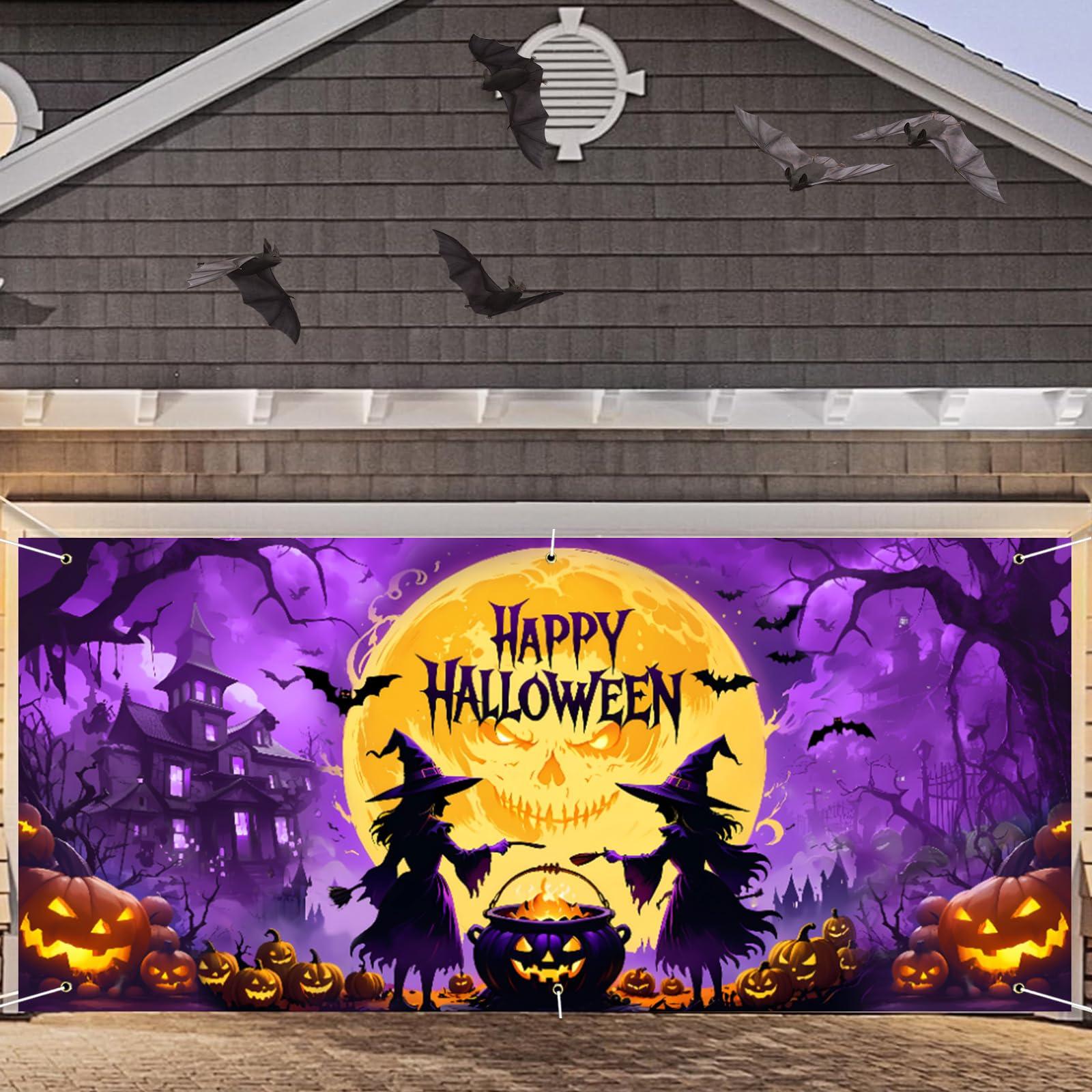 - Halloween Garage Wall Decorations -Easy InstallationThis Halloween wall backdrop are easy to install and remove, perfect way to add a bit of festive flair to your garage without damaging your door. The garage hanging banners with metal grommets and long white ropes, allowing for easy and secure attachment to your garage door or any desired location; Effortlessly transform your garage into Halloween atomosphere or hang them as versatile Halloween indoor/outdoor decorations