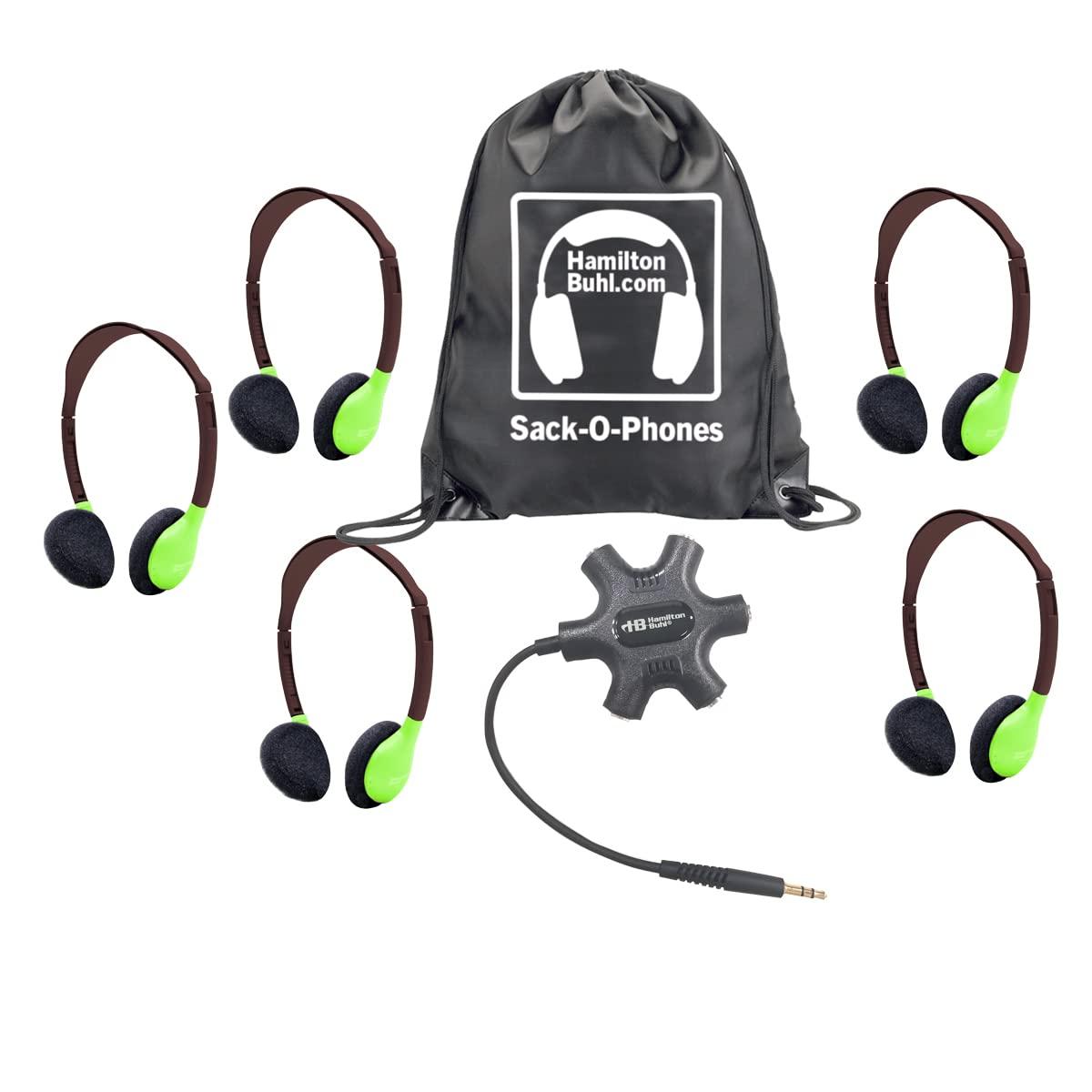 HamiltonBuhl Galaxy Econo-Line of Sack-O-Phones with 5 Green Personal-Sized Headphones, Starfish Jackbox and Carry Bag