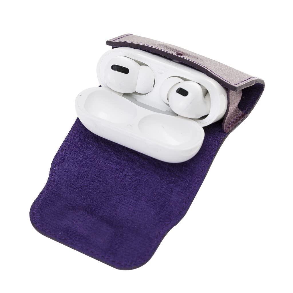 HARDISTON Genuine Leather Handmade Apple AirPods Pro - Soft Case with Keychain Clip - Support Wireless Chargers - Compatible with AirPods Pro (Purple)