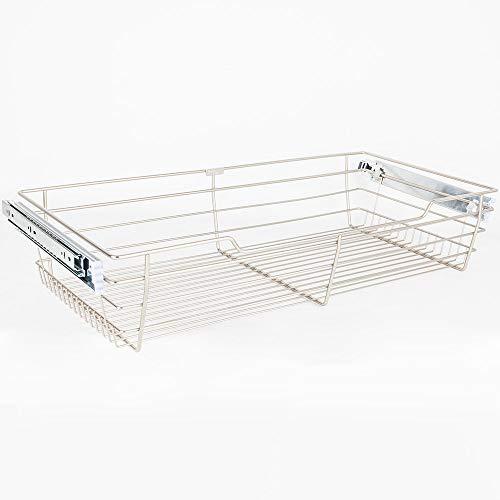 Features: Designed for closet spaces 14 inches deep Constructed of steel wire with 100 pound rating at full extension Closed corner design allows the storage of smaller items without falling out Slides include rubber end covers for secure mounting Closet basket canvas liners available Complete with a limited lifetime Specifications: Width: 23" Depth: 14" Height: 6" Weight Capacity: 100lbs Minimum Opening Width: 24" Cabinet Type: Panel Cabinet Fit Size: 24" Extension Type: Full Extension Soft Close: No Material: SteelProduct Variations: POB1-142311: 11" Tall Wire Basket POB1-142317: 17" Tall Wire Basket POB1-14236 (This Model): 6" Tall Wire Basket