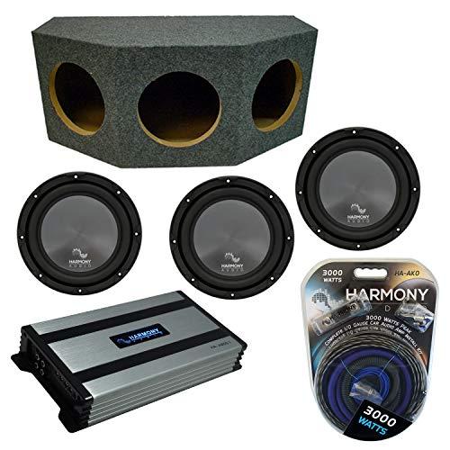 This Package Includes the Following Items: 1 x ASC 312H Car Audio Triple 12" Sealed Subwoofer Rear Angle 3 Sub Box Stereo Enclosure 3 x Harmony Audio HA-R124 Rhythm Series 12" - Package Sub 1 x Harmony Audio HA-A800.1 Class D Mono 1600W Sub Amp 1 x Harmony Audio HA-AK4 Car 4 Gauge Amp - Nickel