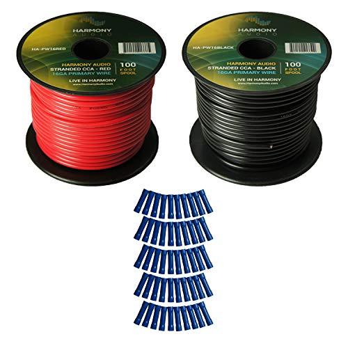 Harmony Audio Primary Single Conductor 16 Gauge Power or Ground Wire - 2 Rolls - 200 Feet - Red & Black for Car Audio / Trailer / Model Train / Remote