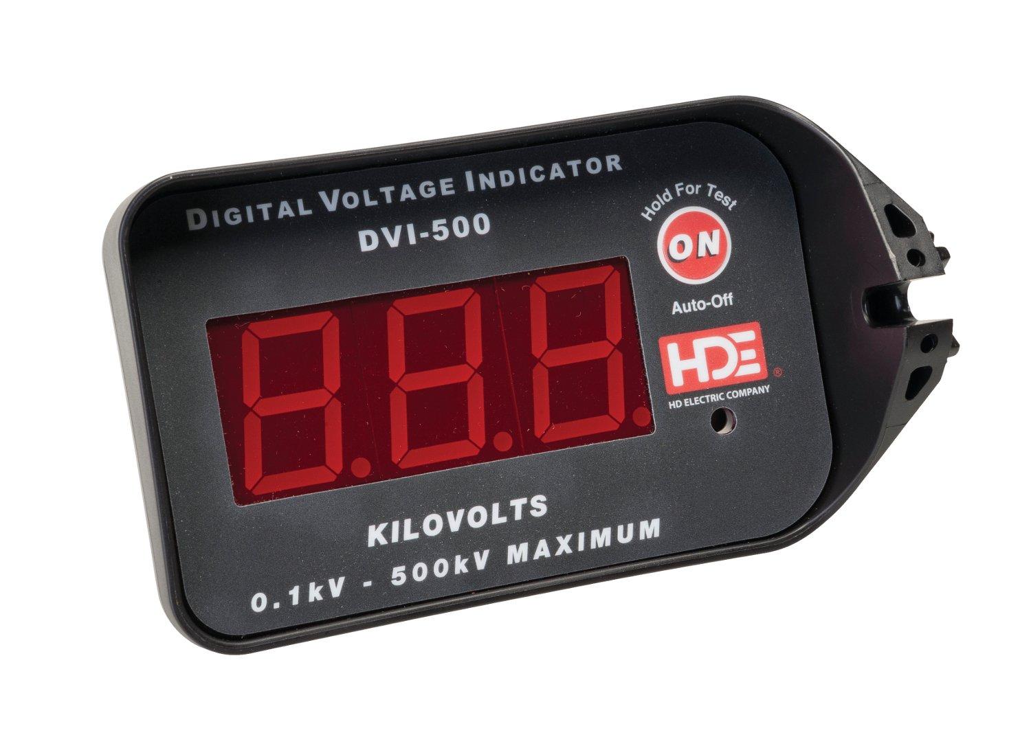 The DVI-500 Series Digital Voltage Indicators are single point instruments designed to read the voltage on a conductor up to 500kV line-to-ground. The large LED readout is easy to read on the end of a long hot stick and can be used on overhead lines or in underground applications with an underground bushing probe. The DVI-500 indicates voltage from 0.1kV - 500kV on overhead and underground systems - displaying the voltage on a large 3-digit LED display. The DVI displays the voltage and emits an audible alarm when voltage above 100VAC is detected with no range selector switches or settings to be made - just contact the conductor and read the display. This allows the user to determine if the voltage being read is nominal or a lower induced voltage. Built-in universal spline for standard hot stick attachment. Auto shut-off with low battery function. DVI Voltage Detector Tester (PT-DVI, optional) available as a power source to test the DVI before and after use.