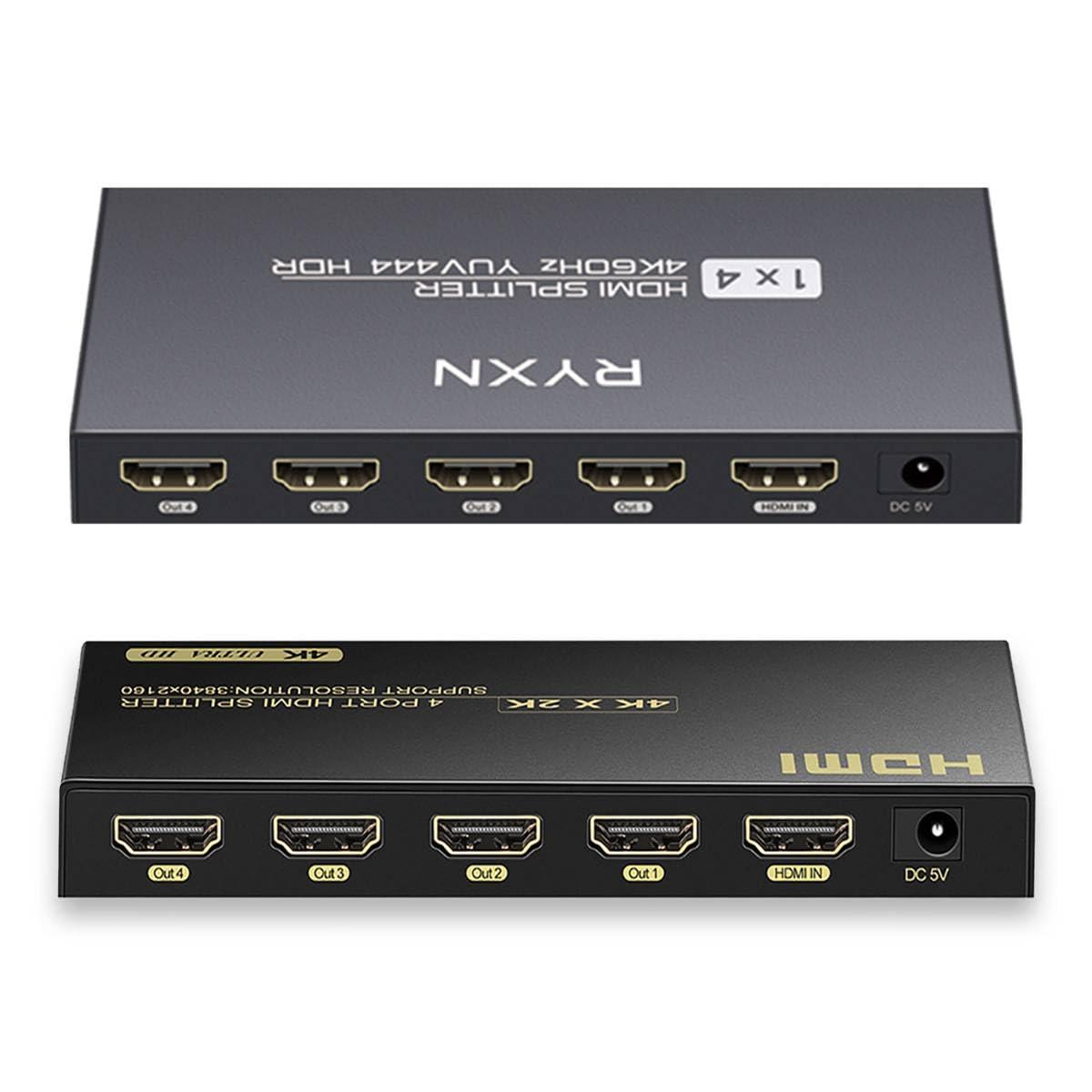 HDMI Splitter 1 in 4 Out 4K@60Hz, HDMI Splitter 1x4 Support HDMI 2.0, YUV 4:4:4, HDCP 2.3, EDID, LPCM 7.1, for PS5/PS4, Xbox, Roku, Apple TV, Fire Stick, Blu-ray Player