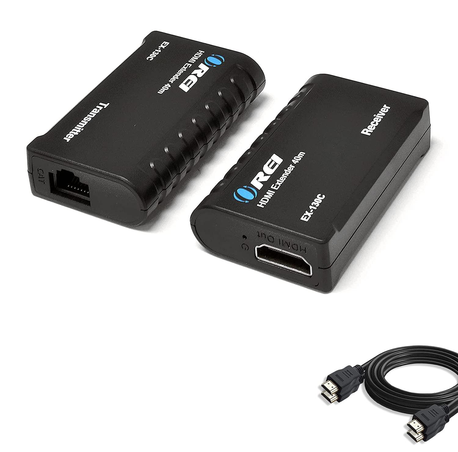 "This OREI HDMI over ethernet can transmit HDMI 1080P signal to above 40 Meters (131FT) by using UTP CAT5e/6. Perfect for home/office for PC, Game Consoles, Blu Ray Players/Media Players. Includes: 1x HDMI Extender, 1x HDMI Receiver, 1x Micro USB Cable, 1x USB Power adapter (US standard, 5V/1A), 2x HDMI Cables, 1 User manual. 1 Year Manufacture's Warranty"