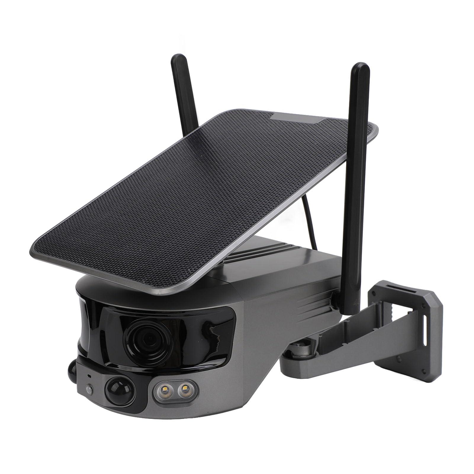 - DUAL LENS: Outdoor security camera adopts left and right dual lens structure, realizing two lens image, 4K ultra high definition picture quality, real time seamless splicing into a 180 no dead angle video screen. One camera shots the whole scene.