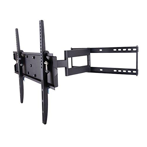 TygerClaw LCD4097BLK full-motion wall mount is designed for most 42 to 83 flat-panel TVs up to 132lbs/60kgs with tilt degree from -12 to 0, swivel degree up to 180, and is constructed from heavy gauge steel for total support and durability. Articulated arm allows movement of TV up to 440mm from wall, also an innovative locking mechanism gives quick and easy installation.