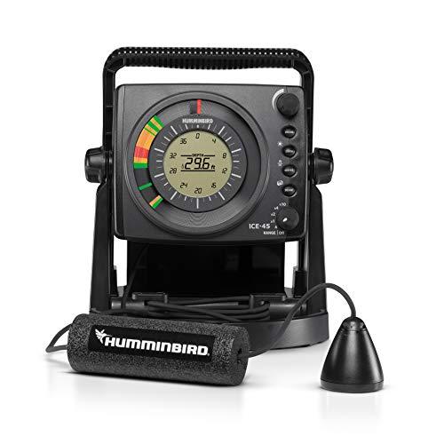 The Humminbird ICE Flasher Series is loaded with innovations that will have you chomping at the bit for the next big freeze The three-color, fiber optic display shows you the lake bottom and marks the fish and your lure below. The ICE 45 flasher features a center dial LCD display that will provide a digital depth display and automatic depth scale and is engineered for peak performance in temperatures as cold as -20. Our Dual Frequency Sonar delivers user-selectable beam options to fine-tune your sonar coverage to keep you zoned-in on the fish.