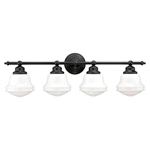 - Oil rubbed bronze finish offers a distinctive look and quality steel construction. White milk glass provides bright illumination and a modern country feel