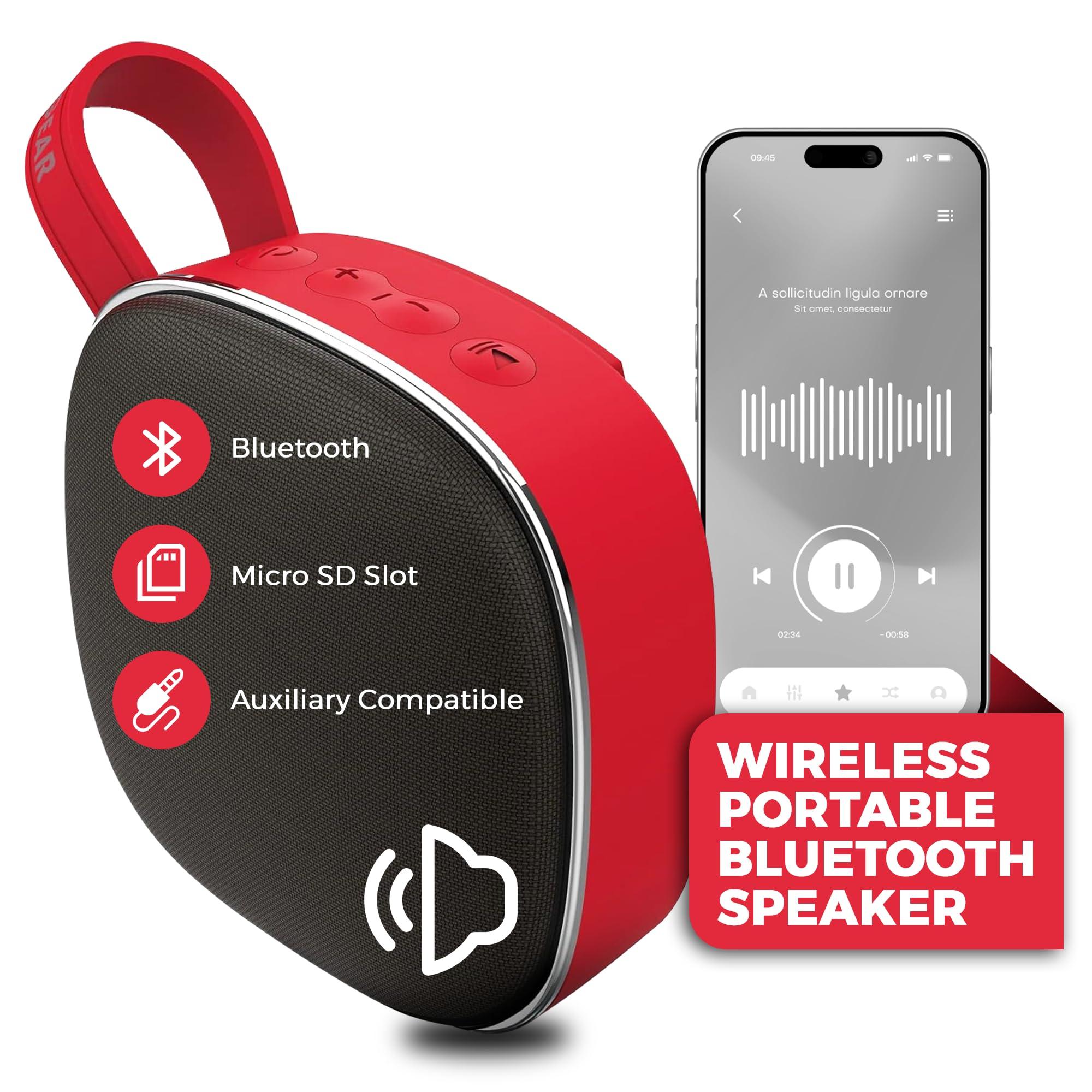 HyperGear Wireless Bluetooth Speaker, Mini Portable Wireless Speaker with Built in Mic & On-Board Controls, Powerful HD Sound, Dynamic Bass & Hands Free Calls for Indoor & Outdoor Travel (Red) 15712