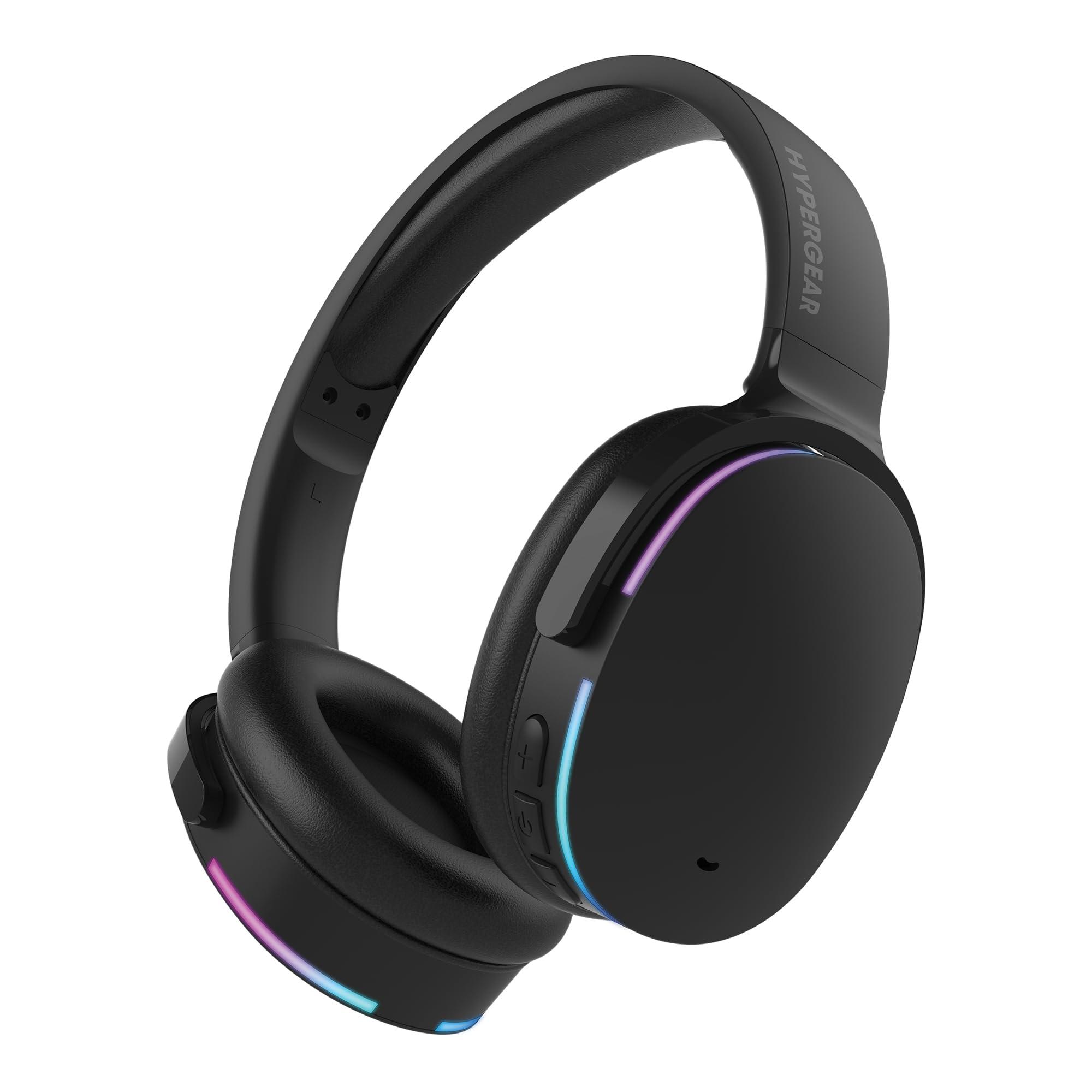 HyperGear Wireless Bluetooth Headphones + Loud HD Stereo Sound Speaker Over-Ear Noise-Isolating Fit Headset with Built-in Mic [LED Light Up Earphones + Speaker] Black