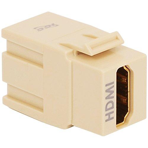 ICC already offers single and dual HDMI port decorex inserts and this modular coupler option gives additional flexibility. The HDMI Modular Coupler is certified and support enhanced and high-definition video along with eight (8) channels of digital audio. They are a popular option for connecting high-definition televisions (HDTV) to Blu-ray players, and many other home entertainment devices. The coupler has female connectors on both ends to connect two HDMI cables. The conductors within each connector are made with 99.99% oxygen free copper which achieves a minimum 101% IACS conductivity rating. The terminal is composed of a copper alloy, covered by a concentric nickel plating. The nickel-copper alloy provides high corrosion resistance and outstanding mechanical properties. The terminal is then plated with gold to boast better shielding and eliminate oxidation. The coupler is designed to be snapped into any outlet with an available port; such as a faceplate or surface mount box. The housing of the HDMI Modular Coupler is available in white. HDMI couplers are packaged in a resealable bag to protect and store them for later use. Gold plated connectors. 99% oxygen free copper conductors. Copper foil shielding to reduce interference. Snap-in installation works with all outlets. Supports v1.2, v1.3, v1.4a, 720p, 1080i, 1080p, 3D, and HDCP. Supports 4K Ultra HD video. Typical maximum distance for HDMI cable is 33 feet (10 meters).