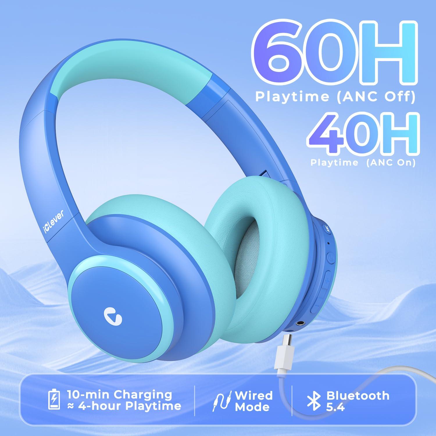 - [Long Battery Life]: Enjoy up to 40 hours with ANC on and 60 hours with it off. A quick 10-minute Type-C charge gives over 4 hours of playtime. When charging isnt an option, use the included 3.5mm audio cable for wired connection. Plus, Bluetooth 5.4 ensures stable connections to multiple devices, perfect for kids' learning and entertainment.