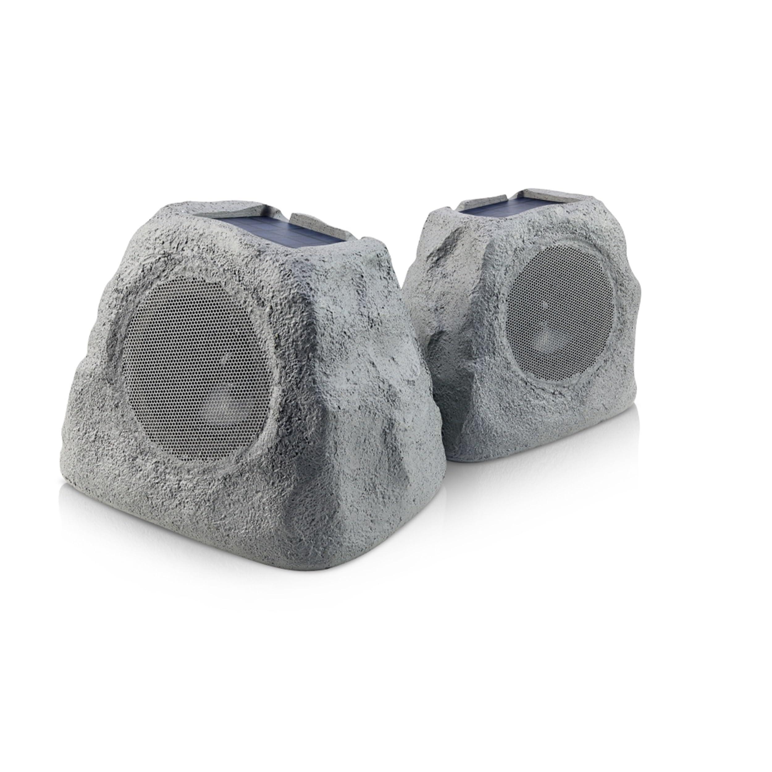 iHome IHRK-500LTMS-PR Solar Rechargeable 30W Outdoor LED Rock Speaker, Weatherproof, Wireless, Multi-Link Surround Sound, for Pool and Garden - Pair