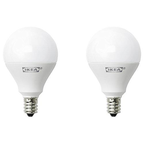 Product dimensions Color temperature: 2700 K Luminous flux: 400 Lumen Power: 5 W Package quantity: 2 pack Color temperature: 2700 K Luminous flux: 400 Lumen Power: 5 W Package quantity: 2 pack Key features - The LED light bulb consumes up to 85% less energy and lasts 10 times longer than incandescent bulbs. - LED life approx. 15,000 hours. Designer: IKEA of Sweden Package measurements and weight Article Number: 303.341.58 Package: 1 Width: 3 \" (7 cm) Height: 1 \" (5 cm) Length: 3 \" (8 cm) Weight: 2 oz (0.07 kg) People & Planet Contains no mercury. Special waste handling may be required. Please contact your local authorities for more information. We only offer LED bulbs in our range. Good to know Not dimmable. LED life approx. 15,000 hours. Light color: warm white (2700 Kelvin). Lights up immediately when switched on. Use an opal light bulb if you have an ordinary lamp shade or lamp and want an even, diffused distribution of light. Product description Polycarbonate plastic
