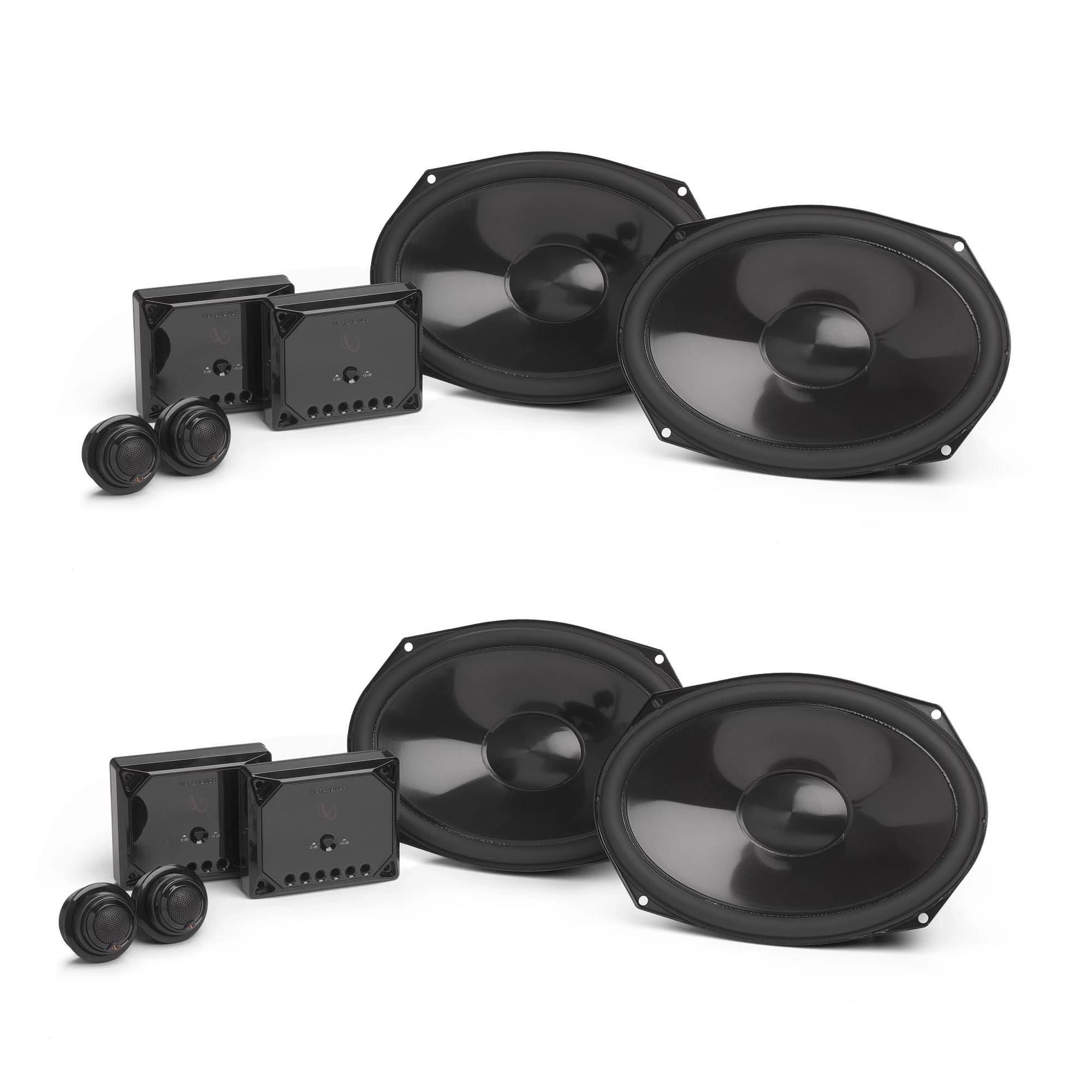 - 2x Infinity REF697CF Reference Series 6x9 Two-way Component System W/ Crossover - (REF697CF) includes all necessary components: woofers, tweeters, crossovers, adapter rings, mounting accessories, screws, spacers, and more for easy installation.