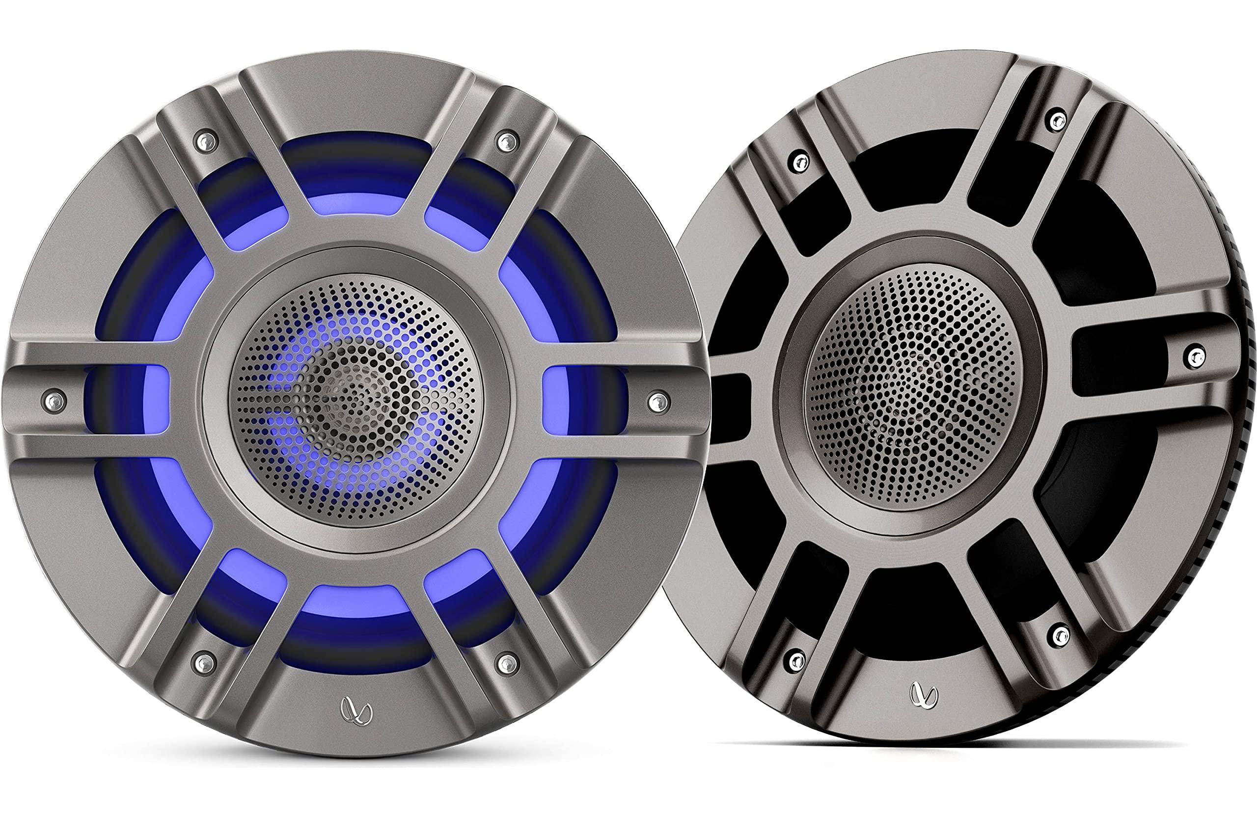 Infinity's Kappa Marine loudspeakers leverage Infinitys world class audio engineering and music reproduction with purpose-built marine loudspeakers that will survive the rigors of the harsh marine environment. The lineup features the three most popular sizes for boats and watercraft. The 6-1/2" coaxial, 8" three-way convertible speaker system and 10" woofer have Plus One polypropylene woofer and midrange cones, Mylar tweeter domes (Except Subwoofer), one piece cast polymer baskets, sealed magnets, and rubber woofer surrounds for high SPL performance. Wind, water or engine noise will not drown them out. Speakers are UV resistant in a marine grade IPX3 (IPX5 from front) weather resistant and include RGB perimeter illumination and go through 300 hours of salt spray testing. And they're Infinity ready to make amazing music on the water.