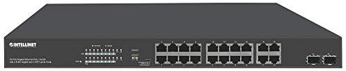 Intellinet Network Solutions 16-Port Gigabit Ethernet PoE+ Switch with 4 RJ45 Gigabit and 2 SFP Uplink Ports. Three-year warranty. Backplane speed: 44 Gbps. PoE power budget of 300 watts